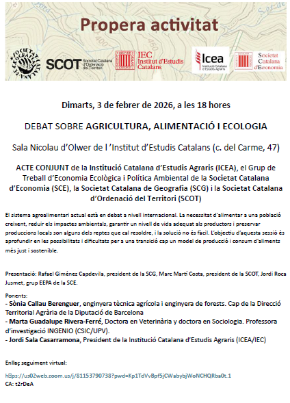 ACTE CONJUNT de la Institució Catalana d’Estudis Agraris (ICEA), el Grup de Treball d’Economia Ecològica i Política Ambiental de la Societat Catalana d’Economia (SCE), la Societat Catalana de Geografia (SCG) i la Societat Catalana d’Ordenació del Territori (SCOT).